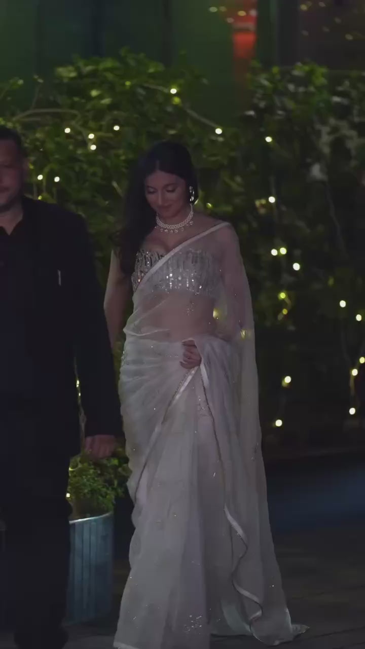 White Net Saree with All-Over Gold Sequin Work with Matching Blouse
