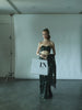 Black Asymmetric Silver Shimmering Sequin Skirt with Gold and Silver Rose-Embellished Sequin Bralette