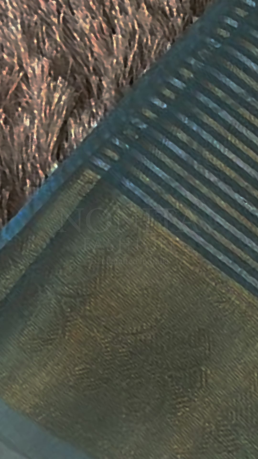 Green Banarasi Organza Silk Saree with Dual Tone Dotted Checks Pattern and Leaf Design Gold Zari Border