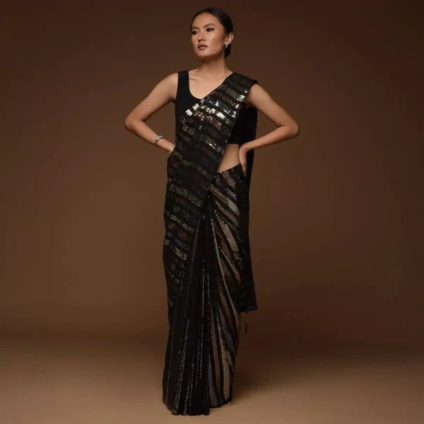Black Georgette Saree with All Over Sequin Work is where glamour meets modern elegance.