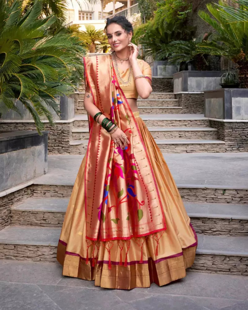 Gold Diwali Delicacy Paithani Silk Lehenga