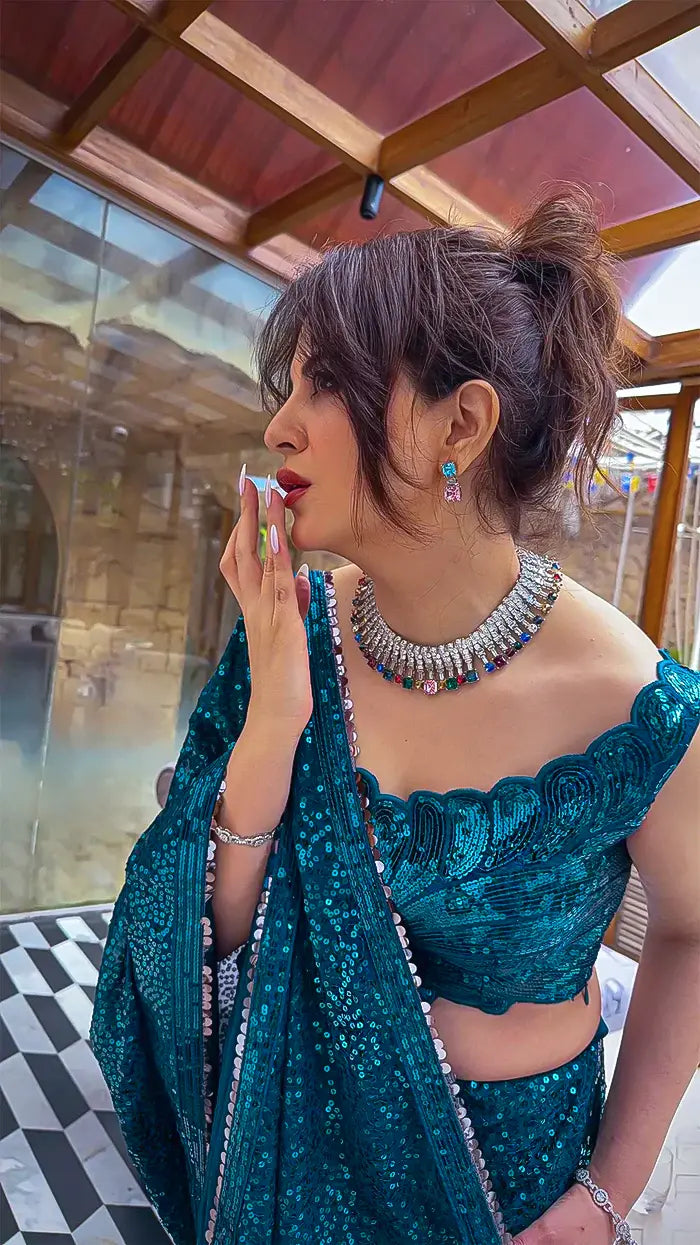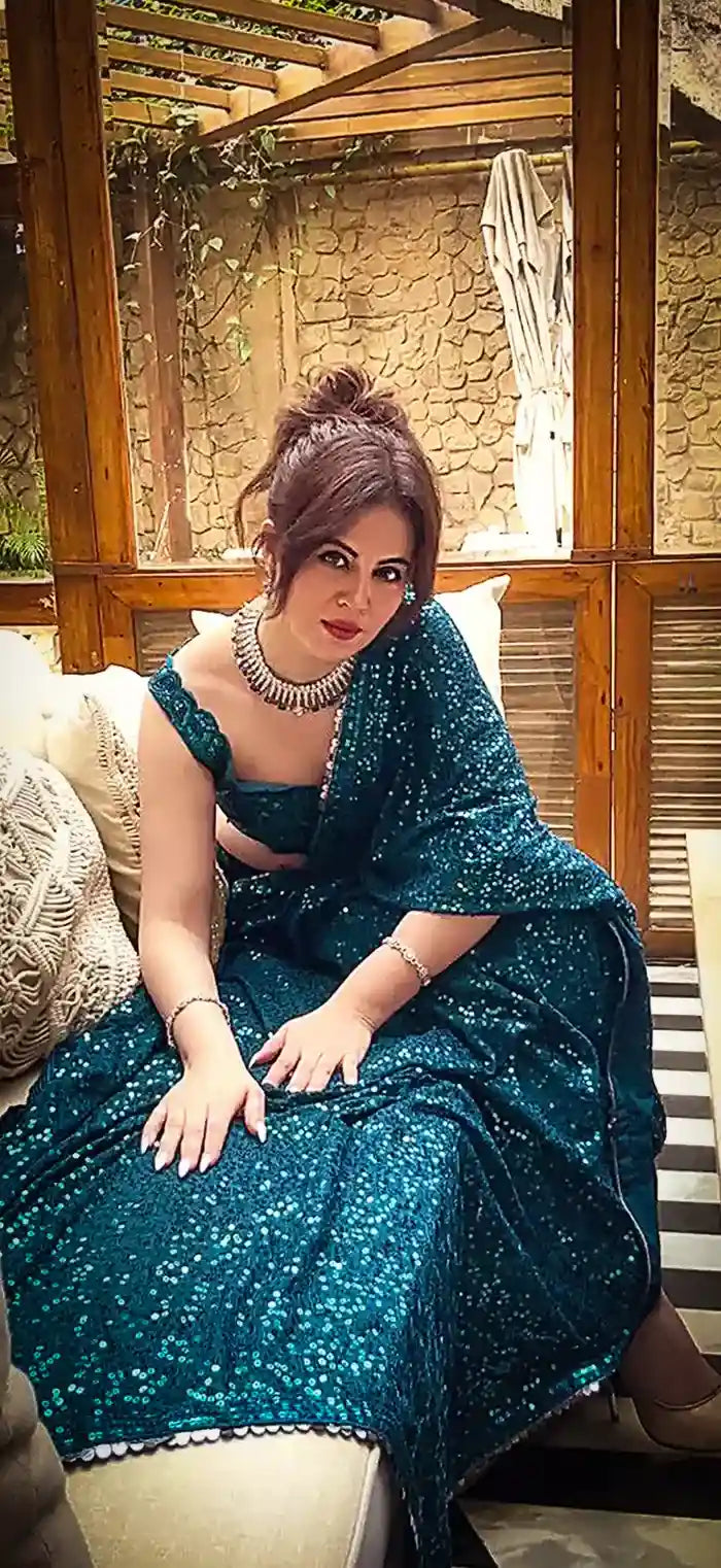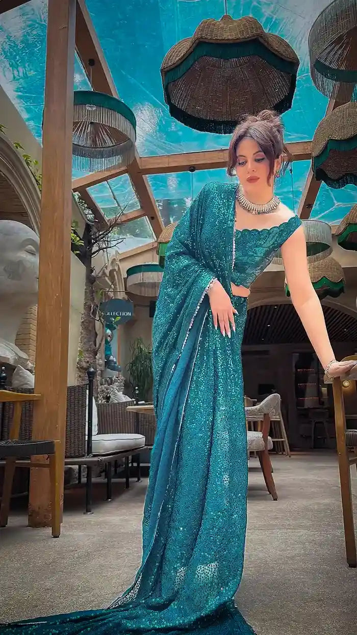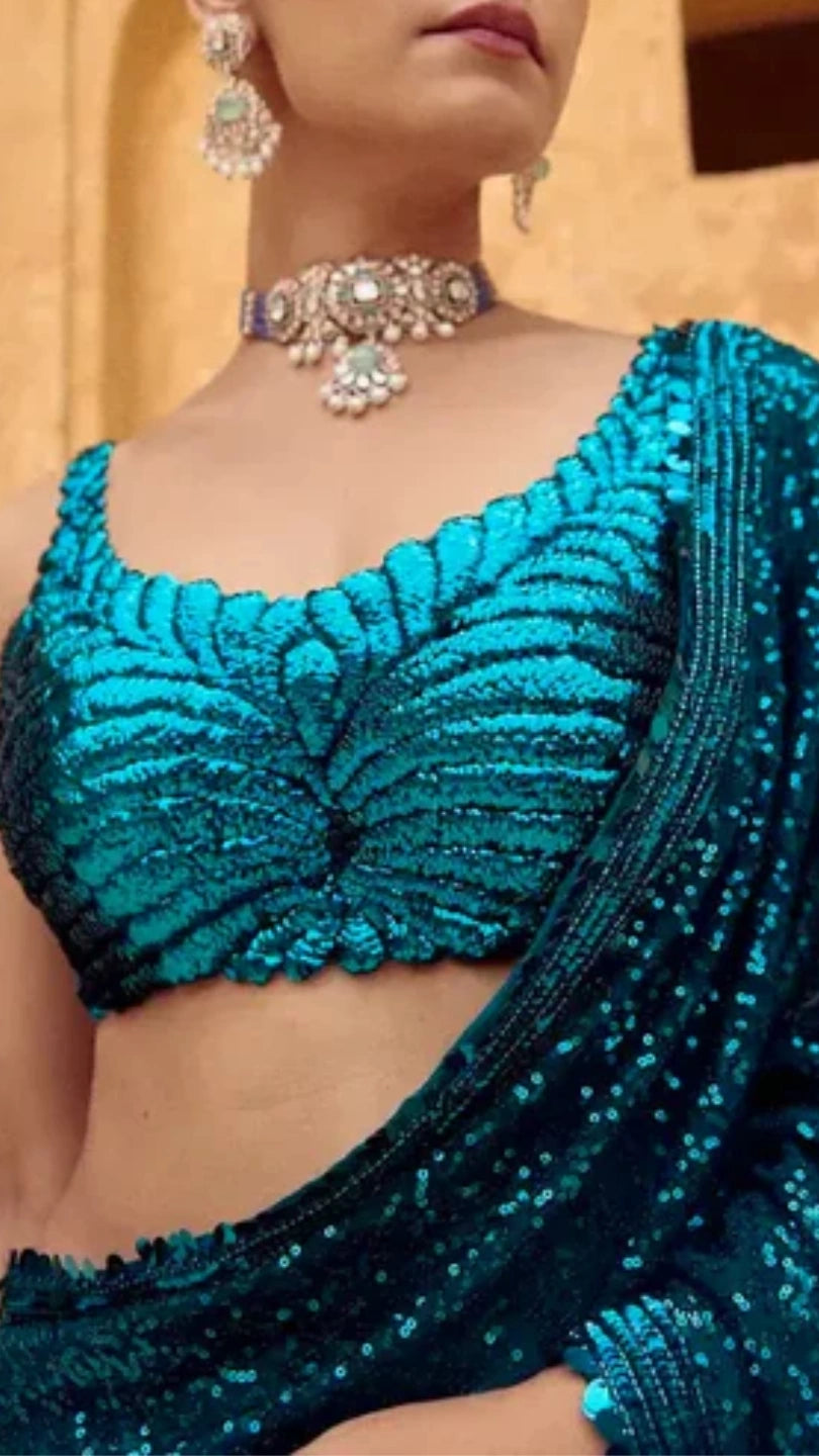 Peacock Georgette Saree with Sequin Work and Hand Embroidery