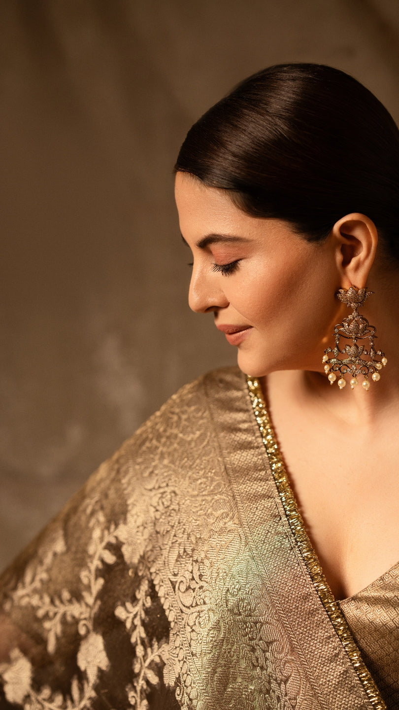 In the heart of Varanasi, Nonita Fashion’s Kaarakhaana / Manufacturing Unit hums with the rhythm of tradition. Here, 3 master artisans dedicate over 200 hours, intertwining 4,800 threads on ancestral looms to create a saree that connects you to your roots—no matter where you are in the world.