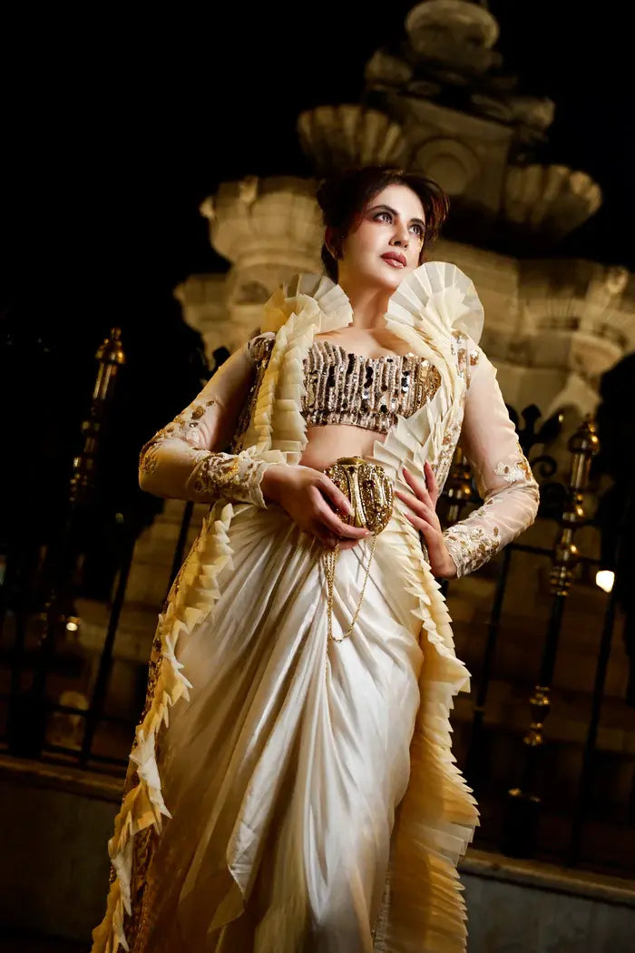 Style: Regal glamour meets modern elegance — a seamless Indo-Western fusion