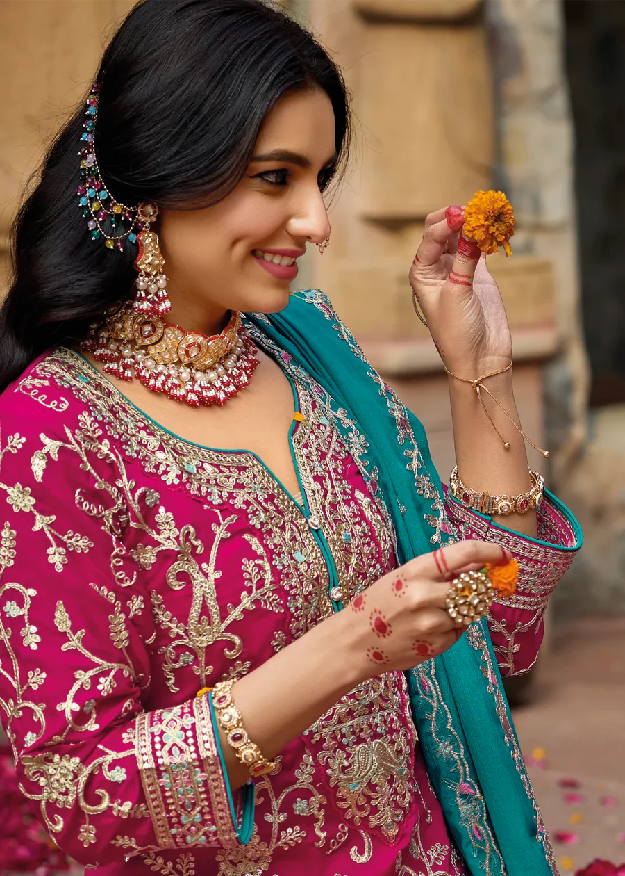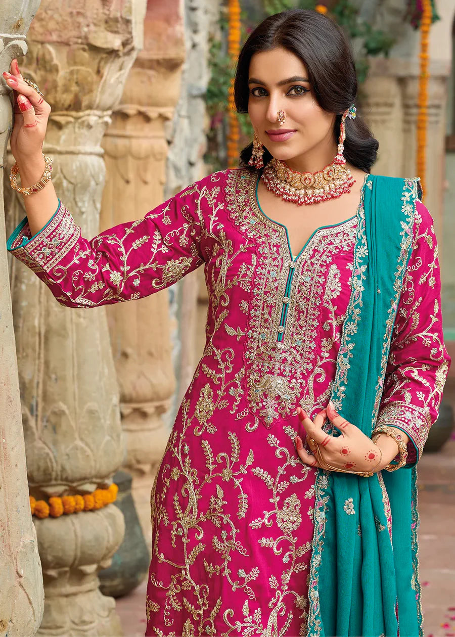 Pink Silk Salwar Kameez with Thread and Sequin Embroidery