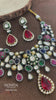 Multicolored Imitation Polki Necklace Set with Ruby Drops